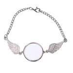 Embrace elegance and symbolism with our beautiful silver angel wing bracelet, featuring delicate wings on either side of a central charm. This thoughtful design symbolizes protection and guidance, making it a meaningful accessory. The charm includes a customizable area, perfect for adding a personal image, making it uniquely yours or a heartfelt gift for someone special. A perfect blend of style and sentiment, this bracelet is a timeless piece to wear close to your heart.