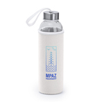 Glass bottle with 500 ml capacity, and casing made of neoprene, combined with a color carrying strap.