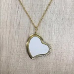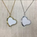 Add a touch of sparkle to your look with our Heart Necklace, featuring an area to personalize with your image or design. Surrounded by shimmering faux crystals along one side, this elegant piece is available in silver or gold finishes, making it a stunning and sentimental accessory. Perfect as a gift for someone special or a meaningful keepsake for yourself, this necklace combines timeless style with a personal touch to celebrate cherished memories or unique designs.